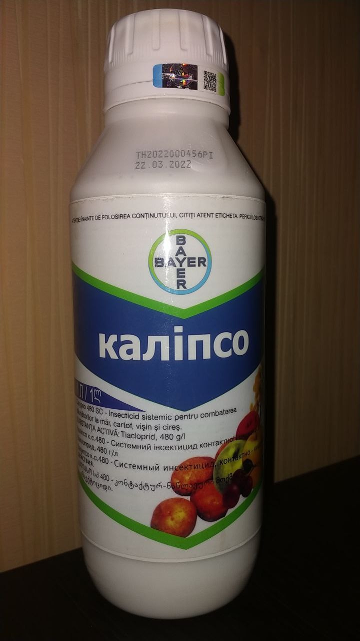 Препарат Калипсо отличается длительным промежутком действия – до 30 дней. В большенстве случаев достаточно всего одной обработки данным инсектицидом для получения отличного результата на весь сезон. Этот препарат не несет угрозу для жизни пчел и других опылителей, а человек, что соблюдает правила обработки растений, также не подвергается негативному воздействию этого инсектицида. Инсектицид Калипсо может быть использован в засушливых регионах страны поскольку он имеет отличную устойчивость к солнцу.